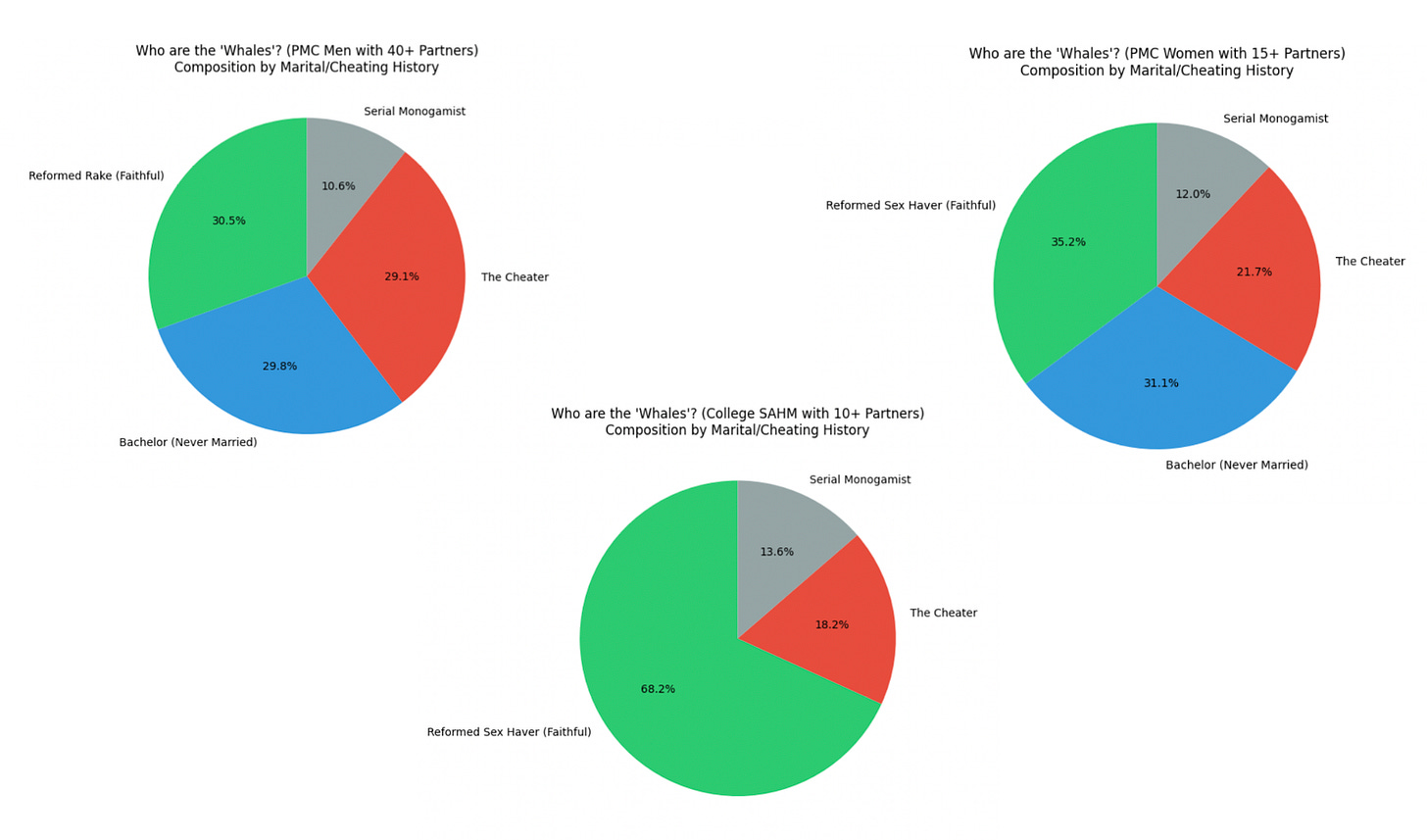 The majority (75%) of male cheaters are sad opportunists who nuke their marriages over a single body added to their count, and the majority of women seemingly cheat to hop relationships.