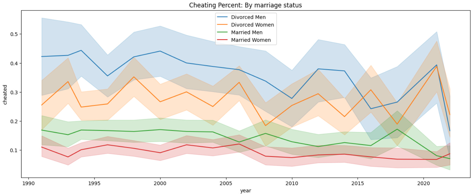 And before anyone gets excited by the above (I can more than double my chances of staying married by lying!), if you were really interested in staying married, just don’t cheat to begin with: