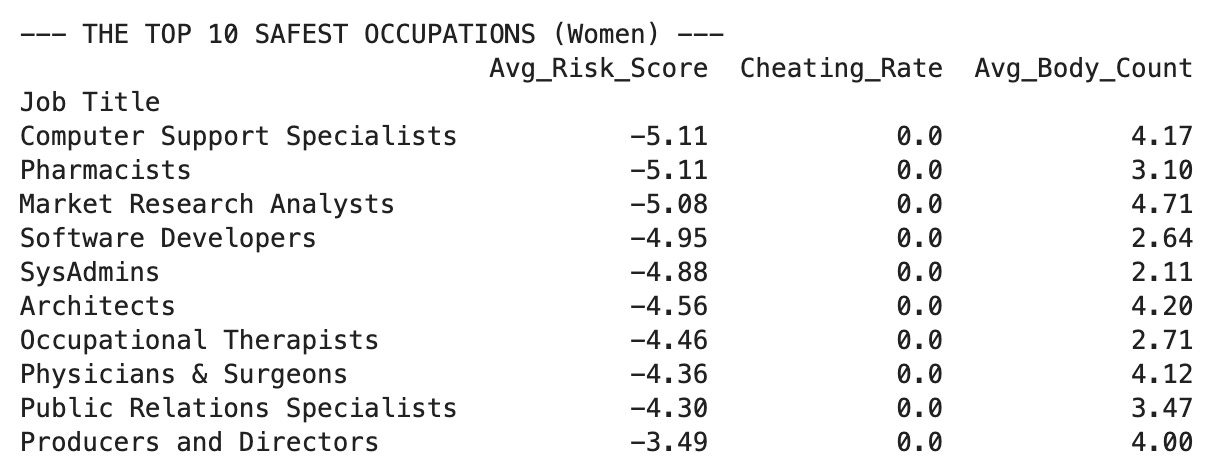 What are the higher risk careers your wife can have? Anything in law or HR or sales, and being a PA or CEO or other office worker around a lot of higher status guys.