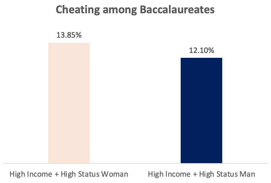 A high status + high income college girl is actually more likely to cheat than a high status + income college boy!