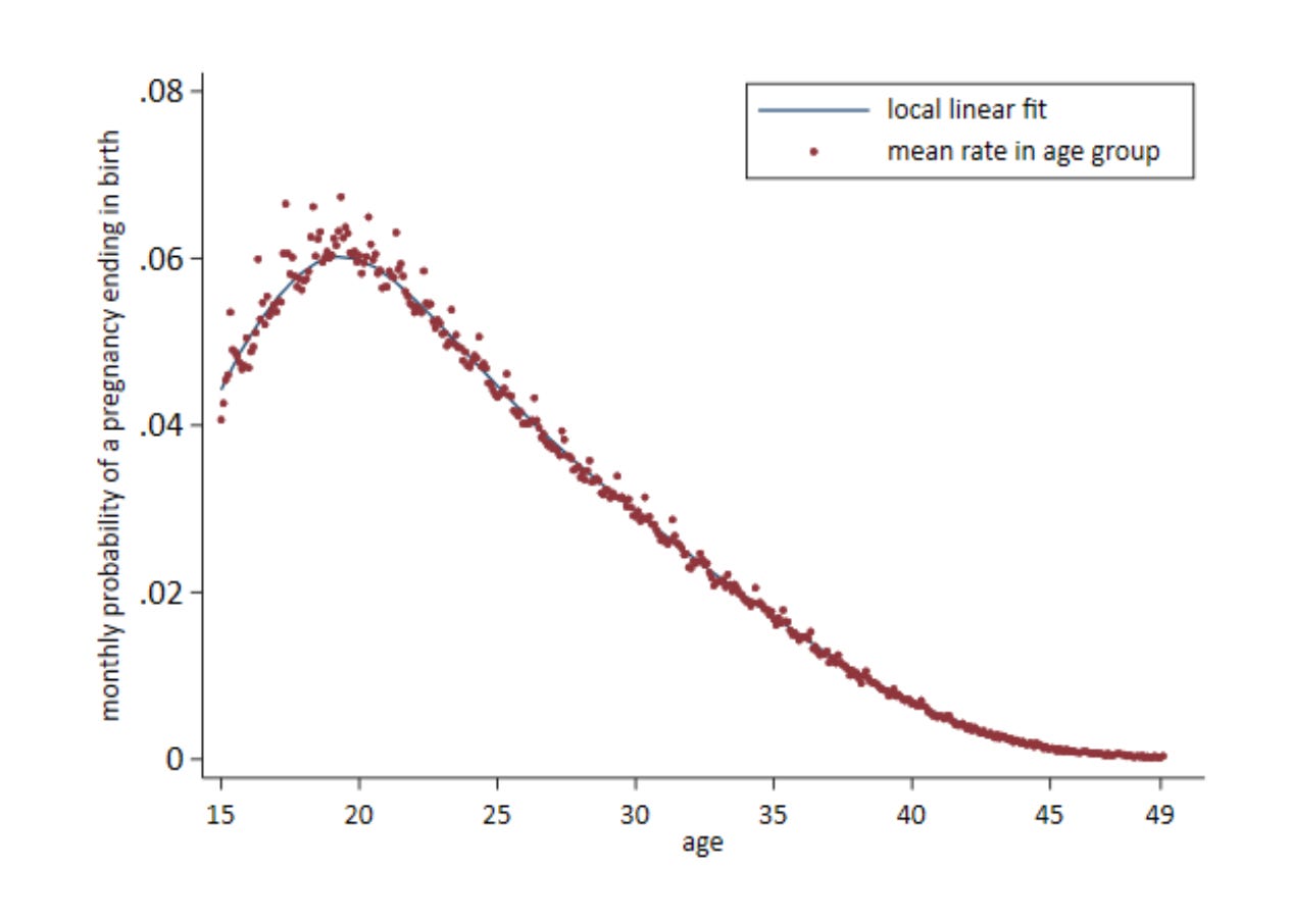 If you want kids though, I urge you to seriously consider “age” as one of your criteria, because of this female fertility graph: